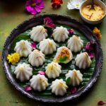 Modak (Ganesh Chaturthi) – Coconut-jaggery filling in rice flour dough.